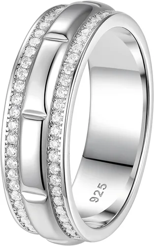 Anillo de boda de oro blanco para hombre, plata de ley 925 con 13 circonitas cúbicas de corte redondo, anillo de compromiso para él, talla 7-14