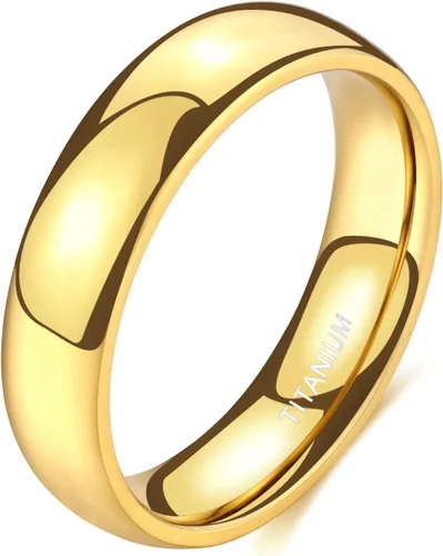 Anillo Tigrade dorado, titanio, cúpula plana, altamente pulido, anillo de matrimonio de ajuste cómodo, talla 3-13, de 0.08 pulgadas, 0.16 pulgadas,