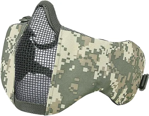 Especificaciones: Material: acero de bajo carbono y nailon 1000D. Color: como se muestra. Tamaño: 16.5 x 6.2 pulgadas. Aplicación: perfecto para competición de Airsoft o BB Gun, juego CS en vivo, juego táctico, batallas de armas Nerf, juego de supervivencia, cosplay, fiesta al aire libre, Halloween, bola de disfraces, etc. Características: 1. Una máscara inferior de media cara puede proteger tu cara y garantizar que apuntes hacia abajo cuando juegas. 2. El diseño compacto y ligero hace que esta máscara de malla sea un transporte cómodo. 3. Malla totalmente transpirable: el cableado de malla no restringe el flujo de aire, lo que evita el sobrecalentamiento y te proporciona un flujo de aire normal. 4. Resistencia al impacto: Este producto ha pasado la prueba de aterrizaje ANSI Z80.3. A una temperatura de 14.0 °F ~ 107.6 °F. La resistencia mínima al impacto es de 600 FPS. 5. La protección auditiva en ambos lados de la máscara puede proteger de forma segura tu oreja y no se dañará en los juegos. 6. Un artículo imprescindible para los amantes de los juegos de guerra. Estar disponible para airsoft, caza, paintball, tiro, cosplay y cualquier otra actividad al aire libre. El paquete incluye: 1 máscara. Nota: no apto para niños menores de 14 años. Para uso bajo supervisión de adultos. - Color: como se muestra. El paquete incluye: El paquete incluye: 1 máscara