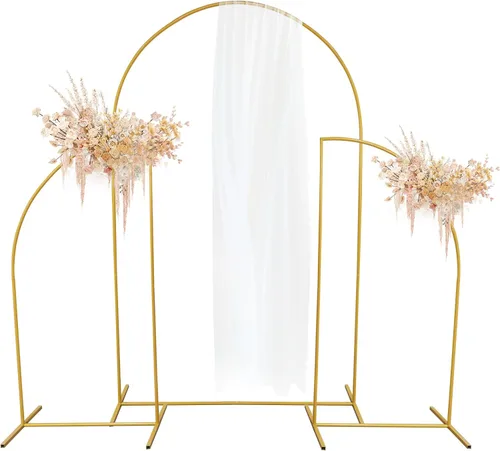 El paquete incluye: 1 arcos de boda mejorados de 55.1 x 86.6 pulgadas y 2 arcos de boda mejorados de 31.4 x 62.9 pulgadas para ceremonia. El arco de jardín alarga el soporte de doble barra, hace que el soporte sea más estable, más resistente al viento. Arco de globos hecho de material de metal de alta calidad, mejor capacidad de carga. Acabado con recubrimiento en polvo que no se oxida fácilmente, se puede utilizar en interiores o exteriores. Puedes decorar el arco de boda con globos, guirnaldas, guirnaldas de tul, tiras de luces. Arco geométrico irregular para decoración de bodas, ceremonias, cumpleaños, baby shower.