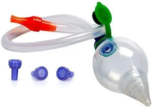Naspira para bebés y niños aspirador nasal-oral para la nariz tapada del bebé. El diseño 2 en 1 de Naspira ayuda a succionar de forma segura y efectiva la nariz congestionada, secreción o congestionada del bebé y limpia la mucosidad de la nariz del bebé haciendo que la respiración sea más fácil. Nuevo diseño claro. Doctor desarrollado. Garantía de por vida. Contiene 1 unidad, 7 filtros desechables y una bolsa de transporte con red.