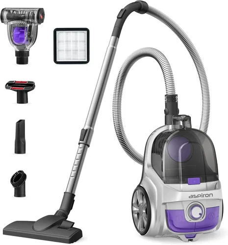 Potente limpieza multiusos: el eficiente motor sin escobillas de la aspiradora Aspiron genera más de 30 Kpa de fuerte succión para aspirar polvo, suciedad, pelo de mascotas y más Rebobinado automático del cable: el cable ultra largo de hasta 20 pies ayuda a la aspiradora a alcanzar un radio de limpieza impresionantemente amplio de 33 pies; además, el cable se retraerá automáticamente cuando pisas el pedal Sin contaminación del aire: la tecnología ciclónica separa el polvo del aire; un sistema completamente sellado con filtro de entrada HEPA-H10 atrapa el polvo fino y las partículas y expulsa aire limpio a través de la esponja de salida. No te preocupes por contaminación secundaria o alergia Ligero y fácil de maniobrar: el tamaño compacto con un radio de giro apretado hace que esta aspiradora sea fácil de mover, levantar y almacenar; la varita telescópica se puede almacenar perfectamente en la parte posterior de la aspiradora cuando no está en uso Taza de polvo de capacidad XL: no necesita bolsas de polvo gracias al diseño sin bolsa y lavable; la taza de polvo grande de 3.7 cuartos de galón reduce la frecuencia con la que debe vaciarlo y mejora la eficiencia de limpieza en comparación con las copas de polvo estándar de 2QT de pequeña capacidad