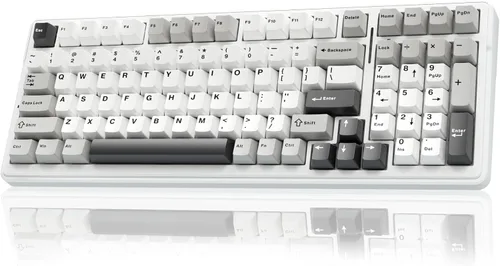 Conexión multidispositivo: el teclado mecánico inalámbrico AULA F98 proporciona tres métodos de conexión, incluyendo Bluetooth 5.0, modo inalámbrico de 2.4 GHz y modo con cable USB. Se puede conectar a hasta cinco dispositivos al mismo tiempo, y cambiar entre ellos fácilmente mediante teclas combinadas FN+. No hay límites sobre la conexión de tu teclado para satisfacer las necesidades de trabajo, juegos y estudio. Teclado personalizado intercambiable en caliente: los interruptores y las teclas se pueden reemplazar libremente (la tecla o extractor de interruptor están incluidos en el paquete). Este teclado personalizable con PCB de intercambio en caliente permite a los usuarios reemplazar los interruptores de 3 pines/5 pines fácilmente sin problemas de soldadura. Los teclados mecánicos F99 equipados con interruptores lineales prelubricados, brindan una sensación de escritura suave y un sonido de escritura agradable, proporcionan una respuesta rápida para un juego emocionante. Teclado mecánico para juegos: el F99 es un teclado mecánico de alta calidad tanto para el trabajo como para el juego. Con efecto de iluminación 16 RGB para añadir un gran ambiente a la sala de juegos. Todas las teclas admiten la personalización macro, lo que permite la grabación y edición de macros, personalizar la función de teclas y 16.8 millones de colores de luz, y admite efectos de iluminación de ritmo musical genial con el controlador. N-key rollover, el teclado puede responder a varias pulsaciones de teclas al mismo tiempo, lo que es útil en juegos muy emocionantes en tiempo real. Estructura de junta y ranura de una sola tecla PCB: este teclado de computadora cuenta con una estructura de junta, almohadilla de silicona integrada extendida y ranura de una sola tecla PCB, optimiza mejor la resistencia y la estabilidad, haciendo que la mano se sienta más suave y elástica. Cinco capas de silenciador de llenado llena el espacio entre la PCB, la placa de posicionamiento y el eje, contrarrestando eficazmente el sonido de ruido de la cavidad del eje que golpea la placa de posicionamiento y proporciona una sensación sólida. Teclas PBT y batería de 8000 mAh: el teclado compacto de 99 teclas con 96% de diseño puede ahorrar más espacio en el escritorio mientras mantiene las teclas de flecha necesarias y el área numérica para juegos y trabajo. El teclado recargable incorpora una batería de gran capacidad de 8000 mAh para proporcionar más energía y una mayor duración de la batería. Las teclas PBT de doble disparo, hechas de material de dos colores moldeados entre sí, hacen que los caracteres de las teclas mantengan la vitalidad y la saturación, sean claras y no se desvanezcan.