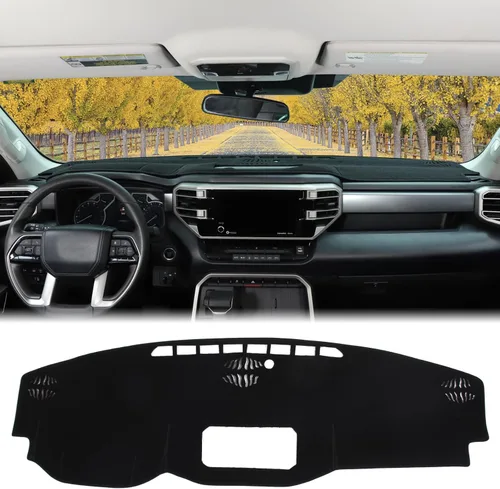 Modelos aplicables: la cubierta de tablero antideslizante es compatible con los modelos de camioneta Toyota Tundra 2022, 2023, 2024, 2025 y 2026+. Confirma el modelo de tu coche antes de comprar. (Negro, para el accionamiento a la izquierd Diseño personalizado: respiraderos y altavoces. Sabemos lo importante que es el aire acondicionado para su camión. No bloqueamos ninguna de las rejillas de ventilación y hacemos recortes para ellos. Para los altavoces, nuestra alfombrilla de cubierta de tablero cubre cualquiera de los altavoces de panel plano, la alfombrilla de cubierta de tablero está diseñada específicamente para que no obstruya el sonido. Material de calidad: la almohadilla de protección solar del tablero está hecha de poliéster de alta calidad, sin olor químico ni olor material, no se decolora y no se encoge, lo que reduce la temperatura de la consola central y evita que el tablero se agriete y deforme, aumentando la vida útil del salpicadero. Fácil de instalar: la cubierta de tablero de salpicadero de poliuretano es fácil de instalar y usar. Larga vida útil, listo para instalar fuera de la caja. La parte inferior de la almohadilla solar con partículas antideslizantes de silicona mantiene la almohadilla solar para tablero no se caiga fácilmente. También se puede plegar y almacenar fácilmente cuando no esté en uso. Soporte profesional: Aunginsy es profesional en el diseño y siempre fabrica los mejores accesorios de automóvil para todos los conductores. Si no estás seguro de si se ajusta a tu modelo de automóvil antes de comprar, o si tienes alguna pregunta o duda, ponte en contacto con nosotros, nos gustaría escuchar tu voz y resolverla por ti.