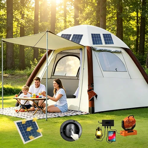 Automatic Pop Up Tent with Solar Panel, 4000mm Waterproof & UV Protection Blackout Tents for Camping, Easy Setup Instant Tent for Camping Outdoor Backpacking & Hiking