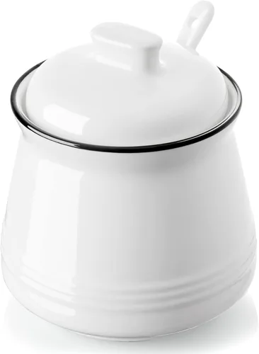 Azucarera DAYYET con tapa y cuchara, azucarero de cerámica de 12 oz con cuchara, recipiente de azúcar para barra de café, tarro de azúcar con Blanco