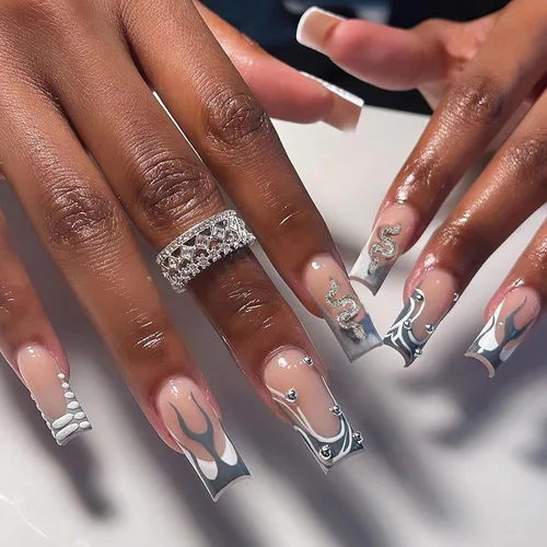 El paquete contiene: recibirás 24 uñas cuadradas largas a presión con 12 tamaños diferentes, 1 pegamento de uñas para hacer tus propias uñas. Puedes elegir la uña postiza más adecuada para ti, es fácil de recortar y limar en cualquier longitud y forma que desees Saludables y duraderas: nuestras uñas metálicas de serpiente 3D están hechas de material ABS saludable, sin olor irritante, mayor brillo, no son fáciles de romper y no dañan el cuerpo humano ni las uñas, y se pueden utilizar con confianza Amplias ocasiones: estas uñas acrílicas a presión no solo son buenos productos para especialistas profesionales, aprendices de uñas, sino también un maravilloso regalo para esposa, novia, hermana y madre. Además, son perfectos para diferentes ocasiones, como fiestas, bailes, viajes, ir de compras, citas, son cómodos de llevar pero te hacen lucir más encantadora Cómodas de usar: las uñas largas a presión están diseñadas de acuerdo con la curvatura de las uñas femeninas, con grosor moderado, ajuste natural, efecto más natural y cómodas de usar 【Efecto duradero】Úsalos semanas rectas o unos días – tú decides. Si quieres tener más de 14 días de duración, te recomendamos utilizar pegamento para uñas y pestañas adhesivas juntos. Si desea cambiar el diseño semanalmente, solo usar pegamento es la mejor opción. La pestaña adhesiva es mejor para una cita nocturna o un pequeño evento