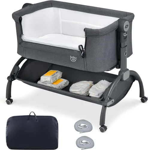 [ Diseño convertible 3 en 1 ]: Esta cuna para bebé 3 en 1 puede servir como moisés independiente, cuna colecho y mecedora. Las correas fijas y las patas ajustables ayudan a fijar firmemente la cuna de la cama al lecho de los padres. [Altura ajustable]: El moisés de bebé tiene altura ajustable de 7 posiciones que se adapta a camas de diferentes alturas. Puede alterar la altura fácilmente con el bloqueo bidireccional para mayor seguridad (Paso 1: presione el botón inferior. Paso 2: Levanta el botón superior). 【Estabilidad y seguridad mejoradas】: Soportado por un marco de metal resistente, el moisés junto a la cama muestra una gran estabilidad. Además, las telas suaves con esquinas seguras y redondeadas son amigables con la delicada piel del bebé. Y las certificaciones ASTM y CPSIA mejoran la fiabilidad. [ Ideal para Recién Nacidos y Bebés ]: Esta cuna de colecho para bebés se adapta a bebés de 0-5 meses que pesan menos de 20 libras. La malla transpirable y visible de 2 lados cuenta con una gran circulación de aire y visibilidad. Además, el colchón suave y cómodo garantiza comodidad. Además, la gran cesta de almacenamiento mantiene los artículos del bebé al alcance. Fácil de mover y transportar: Con 4 ruedas universales con frenos, la cuna para dormir junto a la cama es fácil de mover de una habitación a otra. Las ruedas suaves y silenciosas se pueden bloquear para mayor estabilidad y seguridad. Además, el peso ligero de 20 libras y la bolsa de transporte equipada hacen que el transporte sea más fácil. NOTA: Por favor, retire el perno debajo del botón de ajuste de altura, para que pueda ajustar la altura del moisés fácilmente.