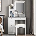 AGOTENI Juego de mesa de tocador con espejo iluminado, mesa de maquillaje con 3 estantes y 5 cajones, mesas de tocador de vestir, escritorio tocador