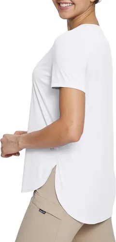 BALEAF Camisetas de manga corta para mujer, cuello redondo, camisetas de entrenamiento, para correr, protección solar, secado rápido, UV