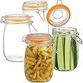 DANALLAN Wide Mouth Mason Jars, 4Pcs 32 oz Glass Jars with Airtight Lid Large Mason Canning Jars Clear Storage Canister Jars with Measurement Marks