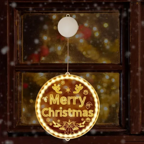 Adorno de luz de ventana de Navidad, funciona con pilas, para colgar en la ventana de Navidad, luz blanca cálida brillante con ventosa LED