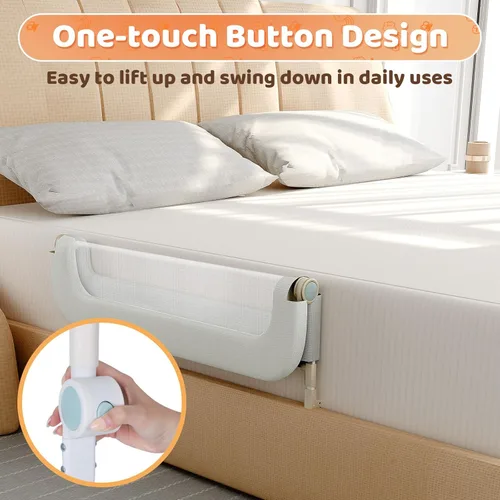 Diseño plegable con un solo toque: nuestros rieles de cama para niños pequeños tienen un solo clic para plegarse. Se pueden levantar para mayor seguridad nocturna y bajar para ahorrar espacio durante el día. El funcionamiento silencioso no molestará el sueño de tu niño pequeño. Altura ajustable de 12 niveles: tiene una elevación de 12 velocidades en la parte inferior que se puede ajustar para adaptarse a colchones de 2 a 13 pulgadas de altura. ¡Si necesitas un riel de cama para camas individuales, dobles, queen o king size, esta sería una excelente opción! 【SOPORTE REFORZADO EN FORMA DE U】- El soporte en forma de U debajo del colchón ofrece una base amplia y estable que no se desliza. Es fácil de instalar debajo del colchón sin herramientas ni cambios en la cama. Las correas reforzadas lo mantienen más seguro, asegurando un sueño seguro para tu bebé. 【RESPIRABLE Y CÓMODO】- Nuestros rieles de cama para niños pequeños están hechos de tela segura, suave y resistente a los desgarros. La malla transpirable y visible mantiene a tu bebé fresco y te permite monitorearlo. 【FÁCIL DE INSTALAR】- Viene con un manual de instrucciones detallado que explica el proceso de instalación, que es simple y rápido, sin necesidad de herramientas. Colóquelo entre el colchón y el marco. La funda de malla extraíble y lavable a máquina facilita la limpieza.
