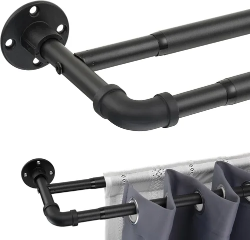 Barras de cortina dobles para ventanas de 28 a 48 pulgadas, barra de cortina industrial negra mate de 1 pulgada de servicio pesado, barras de