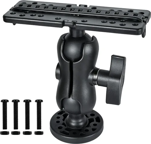 Características: Material: nailon de alta calidad y acero inoxidable resistente, de alta resistencia y duradero. Doble bola giratoria de 360°: montaje y soporte ajustables de 360°, proporcionando una mejor vista para satisfacer sus necesidades de búsqueda de peces. Superficie plana: Diseñado con una superficie plana con varios orificios de montaje, que es compatible con varios modelos. Bola de 1.8 pulgadas de diámetro y base de 2.6 pulgadas de diámetro: mucha mayor fuerza de sujeción para accesorios más grandes. Fácil de instalar: liberación rápida y fácil instalación para su sistema de pistas. Especificaciones: Tipo de artículo: Fish FinderMount Base Material: Nylon y acero inoxidable Color: negro Diámetro de la base: aproximadamente 2.6 pulgadas Diámetro de la bola: aproximadamente 1.8 pulgadas Altura total: aproximadamente 5.9 pulgadas Panel plano superior: aproximadamente 6.3 x 2.1 pulgadas (largo x ancho) Notas: El paquete solo incluye una base de montaje para buscador de peces, cuatro tornillos y cuatro tuercas, no incluye buscador de peces. El paquete incluye: 1 base de montaje para buscador de peces (no incluye buscador de peces). 4 tornillos. 4 tuercas.