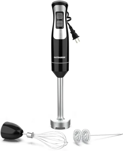Batidora de inmersión de mano, batidora de mano OUTRONSM con cuchillas SS gruesas de 4 puntos, espumador de leche, batidor de huevo para café y