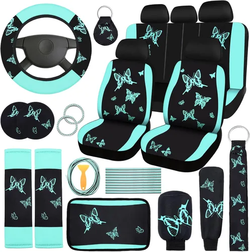 BBTO Juego completo de 43 piezas de fundas de asiento de automóvil con mariposas, accesorios para automóvil con mariposas para mujeres, 5 fundas