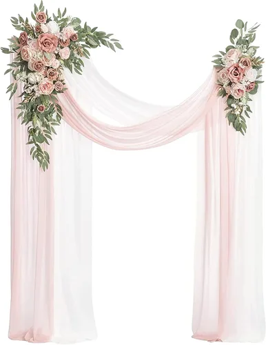 BDBD Kit de flores artificiales de arco de boda (paquete de 4), 2 guirnaldas de rosas y 2 telas de drapeado para decoración de fondo de fiesta