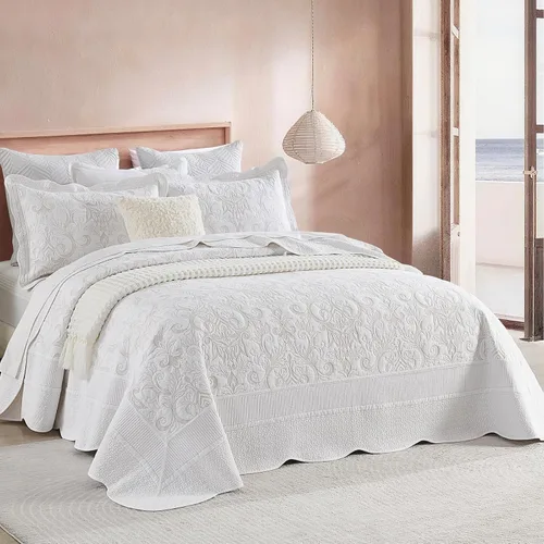 [WOW! Tamaño extragrande. - Este juego de colcha de tamaño King de gran tamaño incluye 1 colcha (120 x 128 pulgadas) y 2 fundas de almohada (20 x 36 pulgadas). Esta colcha ligera ofrece un uso versátil, se adapta a colchones gruesos, colchones altos y camas ajustables divididas. Su diseño de gran tamaño proporciona una protección completa para tus sábanas y edredón contra el polvo y las manchas. Esta es una colcha de gran tamaño, no una colcha estándar 100% algodón natural: el edredón extra ancho tamaño King está fabricado con tela y relleno de algodón 100% natural, ofreciendo un tejido más denso que el algodón estándar para una mayor suavidad, transpirabilidad y agradable al tacto. Es una opción ideal para aquellos con piel sensible o que experimentan sudores nocturnos. Diseño exquisito: esta colcha California King cuenta con un simple telón de fondo blanco adornado con un elegante patrón de bordado de damasco beige. Las costuras cuidadosamente cosidas y los bordes refinados garantizan una durabilidad duradera mientras añaden un toque de sofisticación atemporal para elevar la decoración de cualquier dormitorio. Versatilidad: este juego de cama se puede utilizar como colcha de gran tamaño, colcha, manta de cama o edredón ligero. En verano, funciona como una colcha, mientras que en el invierno, se puede colocar en capas con una manta o edredón para mayor calidez. Tener esta colcha significa que tienes ropa de cama versátil que es perfecta para todas las estaciones Certificado OEKO-TEX: esta colcha blanca y beige de tamaño king tiene certificación OEKO-TEX STANDARD 100, lo que garantiza que los materiales sean seguros y libres de sustancias nocivas. Tú y tu familia pueden utilizar este juego de cama con confianza. Lavable a máquina: el juego de colcha de 100 % algodón es lavable a máquina. Lavar suavemente en agua fría. Secar en secadora a baja temperatura. No usar blanqueador. No dudes en ponerte en contacto con nosotros si tienes alguna pregunta, ten la seguridad de comprar.