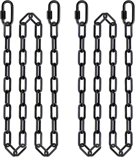 Soporta hasta 1000 libras: las cadenas de columpio de 85" están hechas de hierro de alta resistencia y tienen un revestimiento cómodo, y tienen una capacidad de carga de 1000 libras, adecuadas para colgar sillas y columpios. Longitud ajustable: contiene 2 cadenas negras resistentes de 85 pulgadas y 4 mosquetones M7 de 2.6 pulgadas, lo que permite un ajuste flexible de la longitud de la suspensión a sus necesidades. Recubrimiento Cómodo y Resistente a la Intemperie: Disfruta de un agarre cálido y cómodo durante todo el año con nuestra cadena colgante recubierta de plástico – sin metal frío, ¡solo diversión duradera y de bajo mantenimiento! Para uso en interiores y exteriores: se puede utilizar como una cadena de columpio, cadena de silla colgante, cadena de columpio de porche, cadena de soporte de hamaca, cadena de saco de boxeo, cadena de columpio de yoga, cadena de columpio de árbol, cadena de silla de hamaca, cadena de silla de huevo. Instalación rápida: la instalación se completa en minutos, simplemente conecta el mosquetón proporcionado a tu columpio o silla colgante. Buen servicio: Si tienes alguna pregunta sobre estas cadenas de columpio de árbol de 85", o si hay un problema con la calidad del producto. Ponte en contacto con nosotros y te daremos una solución satisfactoria en 12 horas.