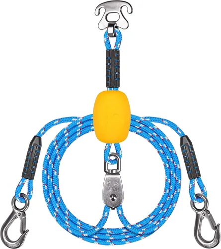 Diseño de polea y flotador: la polea de acero inoxidable mantiene la cuerda y el tubo centrados en todo momento, lo que permite giros suaves y evita que se atrapen. La bola flotante de 4" asegura que la polea y el conector floten en el agua, lejos de la hélice del barco. Disfruta de los deportes acuáticos: ya sea que quieras tirar de un tubo, una moto acuática, un wakeboard o una tabla de wakesurf, nuestro arnés de remolque de barco con polea es el accesorio perfecto para ti. Puede soportar hasta 5000 libras de fuerza de tracción y acomodar dispositivos remolcables de 1 a 4 personas. Fácil de conectar y usar: simplemente engancha los ganchos en la popa de tu barco y conecta el conector a tu cuerda de esquí o tubo. Se tarda menos de 10 segundos en configurar este arnés de remolque. Funciona perfectamente con tubos remolcables de 1 a 4 personas, esquís acuáticos, wakeboards, motos acuáticas y más. Resistente y duradera: la cuerda de remolque está hecha de material de nailon de alta calidad, ultra fuerte y ultraligero, puede flotar en el agua para evitar enredos. Todos los accesorios están hechos de acero inoxidable, antioxidante, de alta dureza. Buen servicio: si tienes alguna pregunta sobre este arnés de remolque de barco, o hay un problema con la calidad del producto. Ponte en contacto con nosotros y te daremos una solución satisfactoria en 12 horas.