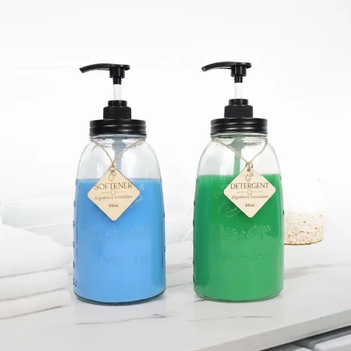 Besuerte - Dispensador de detergente para ropa de vidrio, juego de 2 recipientes de detergente para ropa, recargable y reutilizable, dispensador de