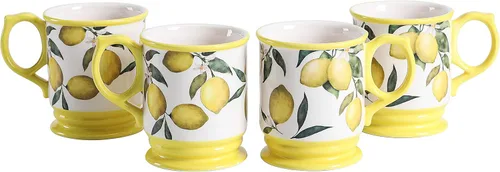 Bico Lemon Dreams - Juego de 4 tazas de cerámica, para café, té, bebidas, microondas y lavavajillas