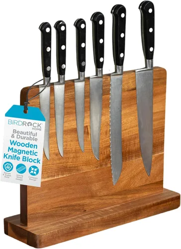 BIRDROCK HOME Bloque magnético de madera para cuchillos | Almacenamiento de cuchillos de madera de acacia | Soporte magnético fuerte de doble cara
