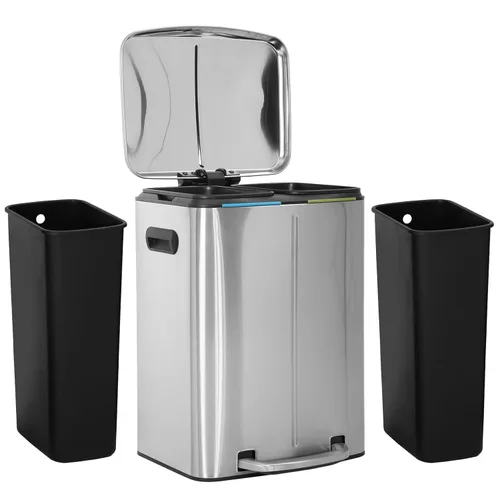 | Característica especial | Bote de basura de acero inoxidable con papelera de reciclaje, Botes de basura dobles para cocina, Contenedores de reciclaje de bajo ruido, Cubo de basura antideslizante, Papelera doble |