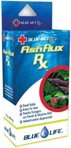 Fish Flux Rx es un medicamento antifúngico utilizado para tratar infecciones fúngicas tópicas y sistémicas en peces ornamentales. Se utiliza en acuarios para el tratamiento de hongos susceptibles al fluconazol como lchthyophonus hoferi y hongo Saprolegnia. Apague el skimmer y deje de usar carbón activado y eliminador de fosfato durante 72 horas; pueden reanudarse después de 72 horas, pero toda la filtración química debe eliminarse durante el curso del tratamiento. Se recomiendan calcetines de filtro para ayudar a limpiar el acuario. No lo use si tiene macroalgas o un refugio. Permita de 10 a 14 días para obtener resultados.