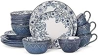 Pfaltzgraff Gabriela Blue - Juego de vajilla de 16 piezas, servicio para 4, platos, tazones y tazas de gres duradero con elegante patrón azul, apto