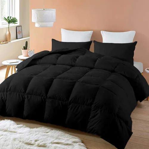 Para todas las estaciones – Lujoso juego de edredón de algodón egipcio de 1000 hilos, tamaño King oriental, 116 x 108 pulgadas, relleno de microfibra de 21.16 x 108 pulgadas (1 edredón + 2 fundas de almohada), relleno de microfibra de 21.16 oz/m², lavable a máquina, color negro sólido