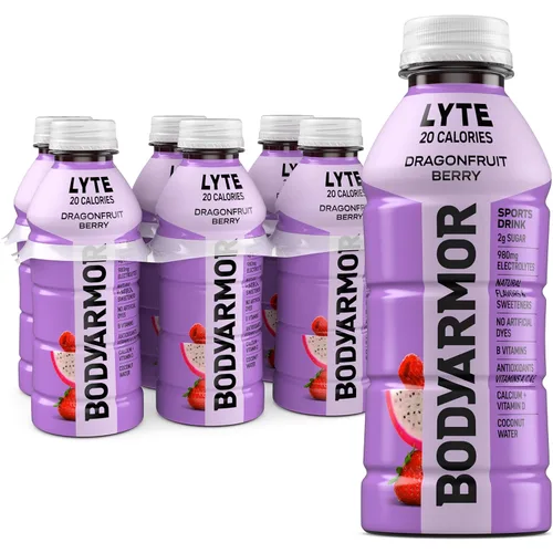 BODYARMOR Lyte Sports Drink es una bebida deportiva baja en calorías hecha con agua de coco para que mantenerse hidratado sea delicioso Reponga lo que su cuerpo necesita con una mezcla de antioxidantes y electrolitos llenos de potasio Estas bebidas deportivas están hechas sin azúcar añadida y sin edulcorantes, sabores o tintes artificiales Baya de fruta del dragón con sabor natural para una experiencia refrescante y revitalizante con cada sorbo Paquete de 6, botellas de 16 onzas líquidas de bebidas electrolíticas BODYARMOR Lyte Dragonfruit Berry para hidratación que mantiene el ritmo de tu estilo de vida activo
