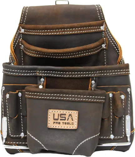 Hecho de cuero genuino con costuras de alta calidad y remaches de acero inoxidable 4 bolsillos espaciosos con 2 soportes de martillo de acero inoxidable y 6 soportes adicionales para herramientas prácticas Lo mejor para carpinteros, electricistas, manitas, fontaneros, enmarcadores y contratistas Fabricado de tal manera que puedes llevar todo tipo de herramientas prácticas, clavos, tornillos, tuercas y pernos al mismo tiempo Cómodo y perfecto para el trabajo diario, un regalo perfecto de Navidad