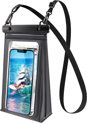 [Gran espacio, practicidad mejorada] Diseño inferior triangular, espacio ampliable. Diferente de otras bolsas impermeables: no solo puede sostener tu teléfono, sino también otros artículos importantes, con compartimentos, puede evitar la fricción entre tu teléfono y los artículos. El bolsillo frontal es compatible con teléfonos de hasta 7" como iPhone 16 15 14 13 12 11 Pro Max, Samsung S25 Ultra S25+ S25 S24, Google Pixel, OnePlus, etc. El bolsillo principal puede almacenar carteras, tarjetas, lentes de sol, auriculares y otros suministros esenciales Imprescindible para vacaciones y crucero: esta funda impermeable para teléfono celular cuenta con un diseño de doble gancho que es fuerte y duradero. El cordón ajustable proporciona versatilidad y estilo, permitiéndote llevarlo en diagonal, sobre un hombro, etc. sin preocuparte por estrangular tu cuello, disfruta completamente de tu hora feliz [Funcionamiento claro y suave] La funda impermeable IPX8 para teléfono celular con diseño de alta transparencia y alta sensibilidad te permite enfocar fácilmente y tomar fotos más nítidas para necesidades de foto/video, funcionamiento táctil fluido incluso en condiciones húmedas, soporte de reconocimiento facial y sonido claro para videollamadas. No permita que la pantalla empañada o el toque que no responde afecten su viaje. Cuerpo pequeño, gran espacio, no voluminoso Bolsa flotante impermeable para teléfono [Capacidad de flotación 10X] La bolsa impermeable flotante mejorada para teléfono proporciona 10 veces más flotabilidad que una funda impermeable flotante ordinaria y puede almacenar objetos que pesen 500 g, asegurando que tu teléfono y los objetos no se hundan aunque caigan al agua. Te tenemos cubierto en la playa, haciendo esnórquel, nadando, bañándote, esquiando, navegando en bote, en kayak, viajes de rafting, festivales de música, eventos deportivos, pescando, etc. ¡No dejes que el agua arruine tu diversión, deja que la bolsa de secado para celular se convierta en tu esencial para vacaciones y cruceros! [Certificado impermeable IPX8] No solo tiene un rendimiento impermeable mejorado, sino que también mejora la resistencia a la abrasión y a la presión para mantener tu teléfono y artículos importantes 100% secos y seguros. La última tecnología de compresión nanotérmica se utiliza para garantizar una alta precisión y un ajuste perfecto. El mecanismo de bloqueo avanzado y las aberturas de doble sellado garantizan la hermeticidad y la impermeabilidad Consejos: Pruebe la resistencia al agua del producto antes de su uso colocando el pañuelo en una bolsa impermeable y remojándolo en agua durante unos 10 minutos