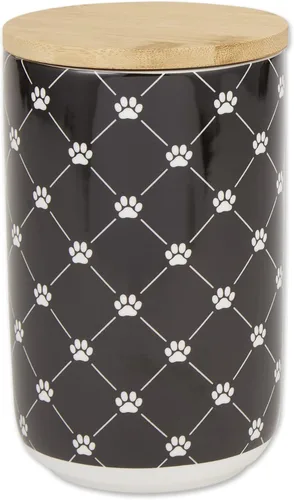 Soluciones ideales para almacenamiento de alimentos: el recipiente de golosinas mide 4 x 6.5 pulgadas (profundidad x alto) y tiene capacidad para hasta 4.5 tazas, perfecto para almacenar alimentos para mascotas, golosinas para perros y gatos o incluso tus galletas, café, té, cacao, pasta, especias y hierbas INSTRUCCIONES: Para sellar la tapa con eficacia, presione firmemente hacia abajo y gire al menos un cuarto de vuelta. Las tapas no son herméticas Material y cuidado: la cerámica resistente es apta para lavavajillas; para las tapas de bambú, simplemente retira la silicona unida a lo largo de la tapa, lava a mano con jabón y enjuaga con agua; envuelve la silicona alrededor de la tapa nuevamente y sella nuevamente para usarla de nuevo Estilo y versatilidad: ya sea para regalar o usar en casa para tu propia mascota, estos recipientes seguramente agregarán encanto a cualquier cocina y traerán cumplidos de los invitados Más opciones para mascotas secas: Bone Dry ofrece varios productos para mascotas en una variedad de estampados y colores, incluyendo camas para mascotas, toallas para mascotas, tapetes para mascotas, cuencos para mascotas, mantas y almacenamiento de juguetes; busca Bone Dry o haz clic en el enlace de la parte superior para obtener más información