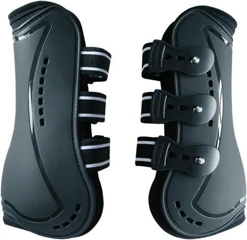 Talla M: apto para caballos de 13hh~14.5hh. Talla L: apto para caballos de 14.5hh~16hh. Excelente protección y soporte: botas de alta calidad hechas de exterior de poliuretano resistente y duradero. Proteja las patas de su caballo de golpes y lesiones por cepillado. ¡Una solución perfecta para saltar o montar en sendero! Comodidad de larga duración: Su suave forro de neopreno actúa como una amortiguación que evita molestias dolorosas y rozaduras. Ligero y transpirable. Menos sudor y frotamientos. Ideal para largas horas en el sendero o en la arena. Cómodos y elásticos: los fuertes cierres de proporcionan el equilibrio perfecto de ajuste cómodo y elasticidad, lo que permite una distribución uniforme de la presión para la máxima comodidad y protección. Fácil de instalar y muy seguro: rápido de poner y quitar gracias a las correas elásticas y cierres reforzados de . Los cierres mantienen las botas en su lugar y evitan que se resbalen o se retuerzan. Las hebillas de ajuste permiten un ajuste preciso. Fácil de limpiar: simplemente limpia la carcasa de plástico duro y el forro de neopreno con un paño húmedo para eliminar la suciedad. Adecuado para el uso diario. Se guarda fácilmente cuando no esté en uso.