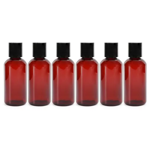 Seis botellas vacías de plástico PET de 4 onzas y seis tapas negras lisas con tapa superior de disco; sin BPA, seguro para alimentos, plástico de grado médico Dispensa fácilmente champú, lociones, jabones líquidos, jabón corporal, jabón para platos, cremas y mezclas de aromaterapia/aceites esenciales El plástico de color proporciona protección contra los dañinos rayos UV La tapa de disco abatible de prensa con dedos te permite dispensar fácilmente la cantidad justa Las botellas de plástico son ligeras y resistentes, ideales para viajes, niños y sobre la marcha