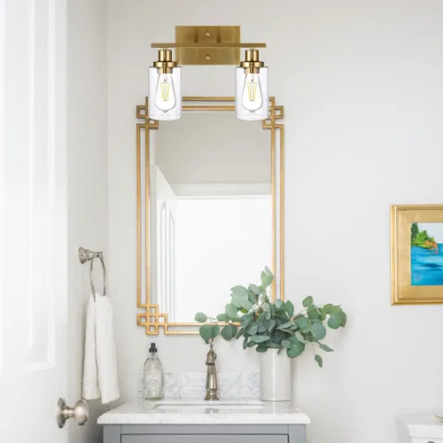 ¿Para qué sirve Brass Bathroom Vanity Light 2 Light Farmhouse Bathroom Lighting Fixtures Over Bath Makeup Mirror Wall Sconce with Clear Glass Shades for Bathroom?