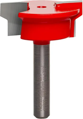 Especificaciones: Altura menor 13/64", diámetro total. 1-1/4 pulgadas, longitud total 1-3/4 pulgadas, diámetro del vástago. 1/2 pulgadas, diámetro pequeño. 1-1/64 pulgadas, altura de carburo de 1/2 pulgadas Una broca produce las juntas de cajón frontal y lateral Corta toda la madera dura, madera blanda, madera contrachapada y compuestos Úselo solo en enrutadores montados en mesa Freud Recubrimiento Perma-SHIELD