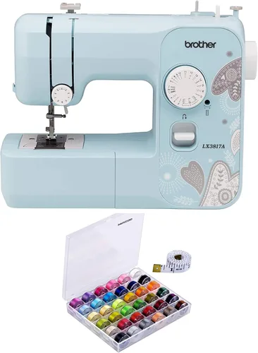 El paquete incluye: máquina de coser Brother RLX3817A de 17 puntadas (azul) con bobinas Paxcoo de 36 piezas e hilos de coser con estuche y cinta métrica suave Incluye: El LX3817 viene con cuatro pies de costura que incluyen pie en zigzag, pie con cremallera, pie con ojal y pie de costura de botón Características: Esta máquina también cuenta con un área de trabajo LED iluminada, brazo libre para coser mangas y jeans ajustados, resistente a atascos, sistema de bobina superior de ajuste rápido y mucho más Uso: El LX3817 es perfecto para coser y reparar todos los días. Añade algo especial a tu regalo o algo, hecho en casa a tu hogar Fácil de usar: comienza a explorar las posibilidades creativas de coser con esta máquina de coser de tamaño completo excepcionalmente fácil de usar