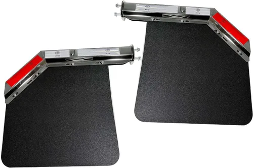 Información: 45 Grados de Ángulo, con Patrón de Espaciado de Pernos de 2-1/2" 2.5" para Soportes de Aleta de Lodo de Acero Cargados de Resorte de Servicio Pesado + Aleta de Lodo de Polímero a juego para Camiones Semi Universales (se ajusta a Freightliner // Kenworth // Peterbilt // International // Mack) Característica: lo suficientemente rígido como para mantener la apariencia y las propiedades anti-vela; diseñado para una larga vida útil en las condiciones más severas dentro y fuera de la carretera; resiste la acumulación de hielo y nieve y repele los desechos de la carretera Ventaja: el uso de aletas de barro proporciona varios beneficios, incluida la protección del marco y el tren de rodaje de la sal de la carretera, la suciedad y otros desechos que causan óxido y corrosión Paquete: par para el lado derecho y el lado izquierdo mirando desde la parte trasera del camión; Guardabarros: 24 pulgadas de largo x 24 pulgadas de ancho x 0.2 pulgadas de grosor; colgador de guardabarros: patrón de pernos de 2.5 pulgadas, cargado por resorte Material: acero cromado, colgador de aleta de lodo con resorte, fácil instalación y vida útil más larga; mayor resistencia al desgaste; puede reducir salpicaduras de agua fangosa y reducir la tasa de accidentes en días lluviosos; también las carreteras cubiertas de nieve resisten eficazmente la nieve y los desechos de la carretera