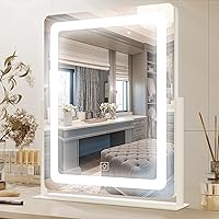 PRIMETEK Espejo de tocador con luces, espejo de maquillaje grande de 19 x 22 pulgadas con luces, espejo de maquillaje iluminado LED, pantalla táctil
