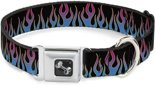 | Nombre de esútilo | Buckle-Down Collar de perro con hebilla de cinturón de seguridad, llamas, negro/azul/rosa, 1 pulgada de ancho, se adapta a cuello de 11-17 pulgadas, mediano |