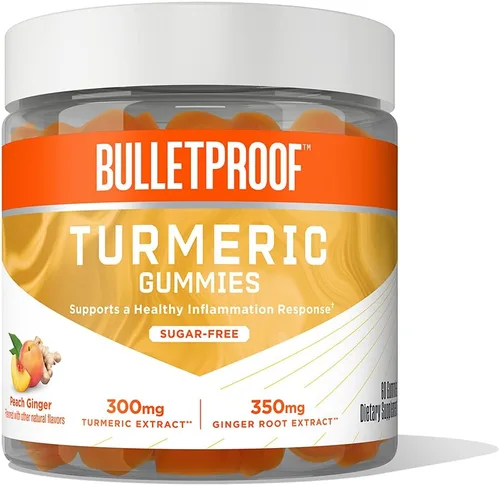 Bulletproof Gomitas de cúrcuma de melocotón y jengibre sin azúcar, 60 unidades, suplemento keto para apoyo de respuesta articular e inflamación,