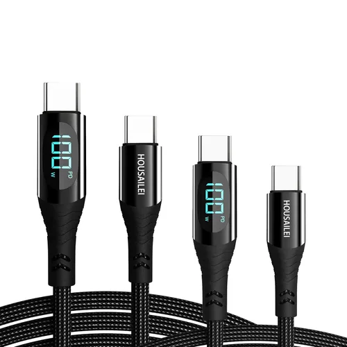 Cable de carga rápida USB C de 100 W: el cable de carga rápida USB C a USB C con pantalla LED soporta velocidades de carga de hasta PD 100 W/5 A con una potencia de carga máxima. Puede cargar la mayoría de los tipos de dispositivos C, incluyendo teléfonos, tabletas, computadoras y más. Transferencia de alta velocidad de 480 Mbps: las velocidades de transferencia de hasta 480 Mbps. cable USB C de dos vías transmisión de velocidad de datos de fotos, películas y archivos para proporcionar una carga rápida. Pantalla digital de alimentación LED: el cable USB C de 100 W con pantalla de alimentación LED, se muestra la potencia de carga rápida en tiempo real, utiliza el puerto con pantalla LED para conectar tu dispositivo. La potencia de salida máxima de los datos del cable USB C a USB C es de 100 W, pero la potencia de salida real varía debido a la potencia de salida de tus dispositivos de carga y cargadores. Chip inteligente de marcador electrónico: el cable de carga rápida USB C integrado con chip de marcador electrónico, chip E-Marker para ayudar a estabilizar la corriente y el voltaje protege tu dispositivo para una carga segura y una carga rápida. Cable duradero y flexible de 6.6 pies: el cable de carga USB C de nailon duradero se puede doblar arbitrariamente. El conector de cable USB C a USB C tiene un cuello grueso, resistente y fuerte para una vida útil más larga. 10 veces más duradero que el cable USB-C original.