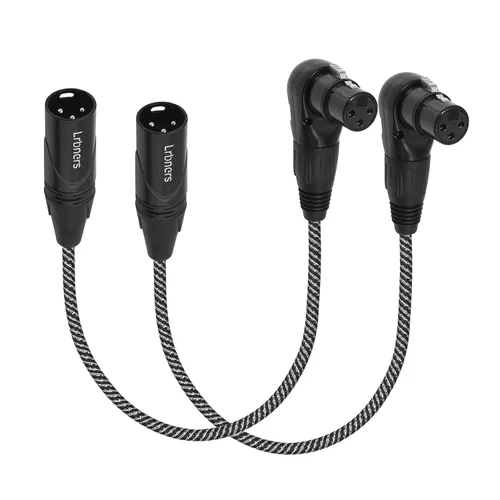 Diseño hembra XLR en ángulo recto de 90° que ahorra espacio: diseñado con un conector macho en ángulo recto moldeado con precisión que se coloca al ras contra los paneles del equipo, este cable elimina el volumen de los conectores rectos en unidades de rack estrechas, pedaleras y paneles traseros de consola. El diseño de perfil bajo evita la interferencia del puerto en configuraciones de alta densidad al tiempo que permite un enrutamiento suave del cable a lo largo de los bordes del equipo. Ideal para instalaciones permanentes donde la gestión de cables limpia es fundamental. Carcasa resistente de aleación de zinc y sistema de bloqueo seguro: construido con carcasas de aleación de zinc resistentes que resisten el impacto y la corrosión, estos conectores cuentan con estructuras internas reforzadas para mantener la orientación de 90 grados bajo estrés. El mecanismo de bloqueo con resorte garantiza un acoplamiento positivo con los gatos del equipo, evitando desconexiones accidentales durante las actuaciones en vivo o cambios frecuentes de configuración. Probado para soportar más de 5,000 ciclos de inserción. Tecnología de blindaje EMI/RFI de doble capa: el blindaje dual avanzado combina papel de aluminio para protección electrostática y cobre trenzado para rechazo electromagnético, bloqueando el 95% de las interferencias de sistemas inalámbricos, iluminación LED y cables de alimentación. Mantiene la integridad de la señal en entornos de RF pesados como etapas y camiones de transmisión, ofreciendo una transmisión de audio limpia para aplicaciones críticas. Longitud optimizada de 1.5 pies para configuraciones flexibles: la longitud de 1.5 pies proporciona el alcance suficiente para una ordenada gestión de cables en plataformas de grabación portátiles, estaciones de podcast y matrices de pedales de efectos. Lo suficientemente corto como para evitar enredos y pérdida de señal, pero suficiente para conectar unidades o equipos adyacentes en la misma superficie. Perfecto para configuraciones móviles donde la eficiencia del espacio es importante. Transmisión pasiva de solo señal (sin alimentación fantasma)-- Diseñado exclusivamente para enrutamiento de señal de audio sin capacidad de alimentación fantasma. Conecta de forma segura micrófonos prealimentados, dispositivos de nivel de línea e instrumentos activos a mezcladores, interfaces o procesadores. Incluye etiquetas de advertencia transparentes para evitar el uso accidental con micrófonos de condensador que requieren 48 V de alimentación.