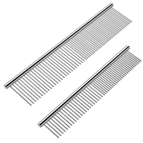Cafhelp Paquete de 2 peines para perros con extremos redondeados de acero inoxidable, peine para gatos para eliminar enredos y nudos, herramienta
