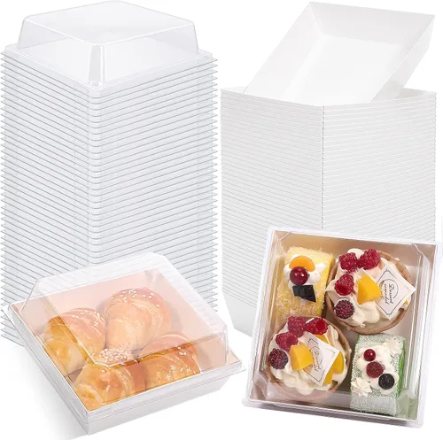 Cajas de papel para embutidos con tapas transparentes, paquete de 50 recipientes cuadrados desechables para alimentos, cajas de papel para pasteles,