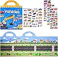 ASTARON 88 Piezas Libro de Calcomanías de Vehículos para Niños Pequeños, Libros de Calcomanías 3D Reutilizables Actividades de Viaje por Carretera